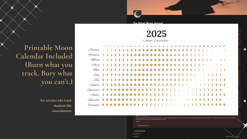 Whether you're planting new seeds or shedding old stories, this journal becomes your anchor in the lunar current.